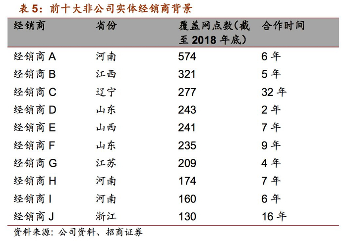 扁平的经销系统使飞鹤能更有效地管理线下客户。公司从2013年开始推动渠道改革,目前形成单层经销体系,是一二线品牌中渠道层级最少的。相比于多层级经销商,一方面飞鹤更接近终端市场,能及时获得市场的第一手资料及反馈,另一方面,存货能见度更强,公司可以有效管理终端产品销售。另外,单层经销商体系可以使公司和经销商享有更丰厚的利润空间,加大品牌和市场投入。