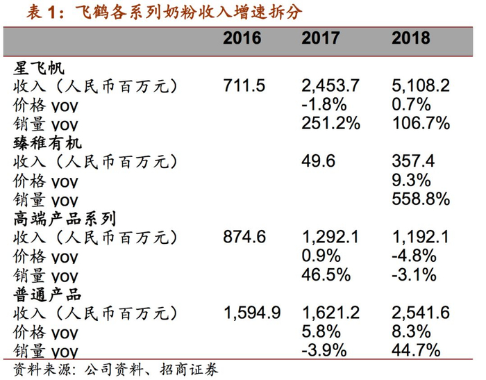 壮士断腕,聚焦星飞帆实现产品结构升级。公司早在2010年就推出超高端产品星飞帆,定价人民币368元/罐(700g),但是由于前期品牌影响力不够,飞鹤仍以臻爱倍护为主打产品。2016年公司定位“更适合中国宝宝体质”,决定聚焦营销、渠道、团队等多方面资源主推星飞帆产品,并忍痛砍掉当时仍贡献收入和利润的低端产品线“飞慧”系列。