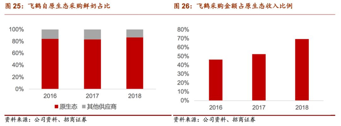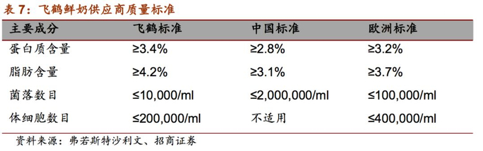 飞鹤与原生态长期合作,签署优先供应协议,奶源优质可控。飞鹤的鲜奶采购成本占销售成本约30%,其中80%以上采购自原生态集团,鲜奶质量超过中国和欧洲标准。公司与原生态保持长期合作关系,亦是对方的第一大客户,签署长期合作协议,保证飞鹤所需鲜奶的优先供应。除原生态外,公司其余20家鲜奶供应商大部分位于工厂附近,还有75家备选牧场名录以应付紧急情况,对上游奶源控制力强。