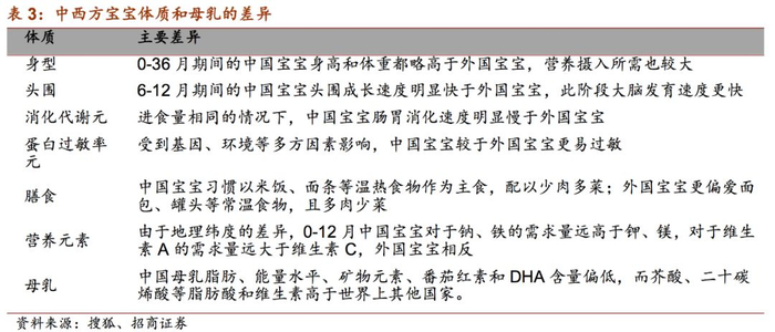 定位“更适合中国宝宝体质”,内资与外资品牌差异化竞争。2015年飞鹤基于针对中国宝宝体质的独特配方,确定“更适合中国宝宝体质”的新定位,与外资品牌采用全球统一配方、未能因地制宜形成鲜明对比。而在质量、安全等成为奶粉的基本要求后,“适合”将会是消费者越来越看重的特性。中国和外国宝宝体质不同,中西方母乳成分也相差较大,飞鹤通过更接近中国母乳的产品牢牢把握消费者心智。
