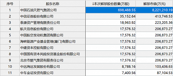 中石油集团所持股份占此次解禁的比例近八成,这部分解禁暂不必担忧,然而剩余二成的解禁威力仍不可小觑。
