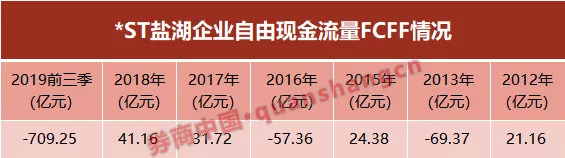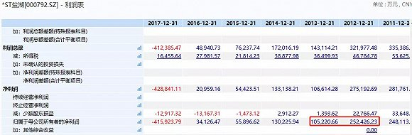 其实,7年前*ST盐湖的裂缝就已经出现,2013年业绩较2012年大幅下滑。据WIND数据,2012年归属母公司的利润高达25亿元以上,但2013年降至10.5亿元。同时,当年的企业自由现金流降至-69亿元。