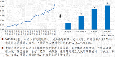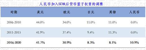 这张图专门列出了人民币国际化的一个具有里程碑意义事情。2016年10月1号,人民币开始成为特别提款权的成分货币,一次性比重达到10.9%,超过日元和英镑,仅次于美元和欧元,是第三大货币。