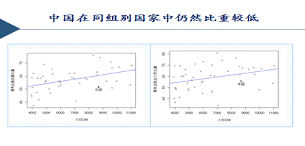 中国的服务业在同组别国家中间,比重仍然是比较低的。