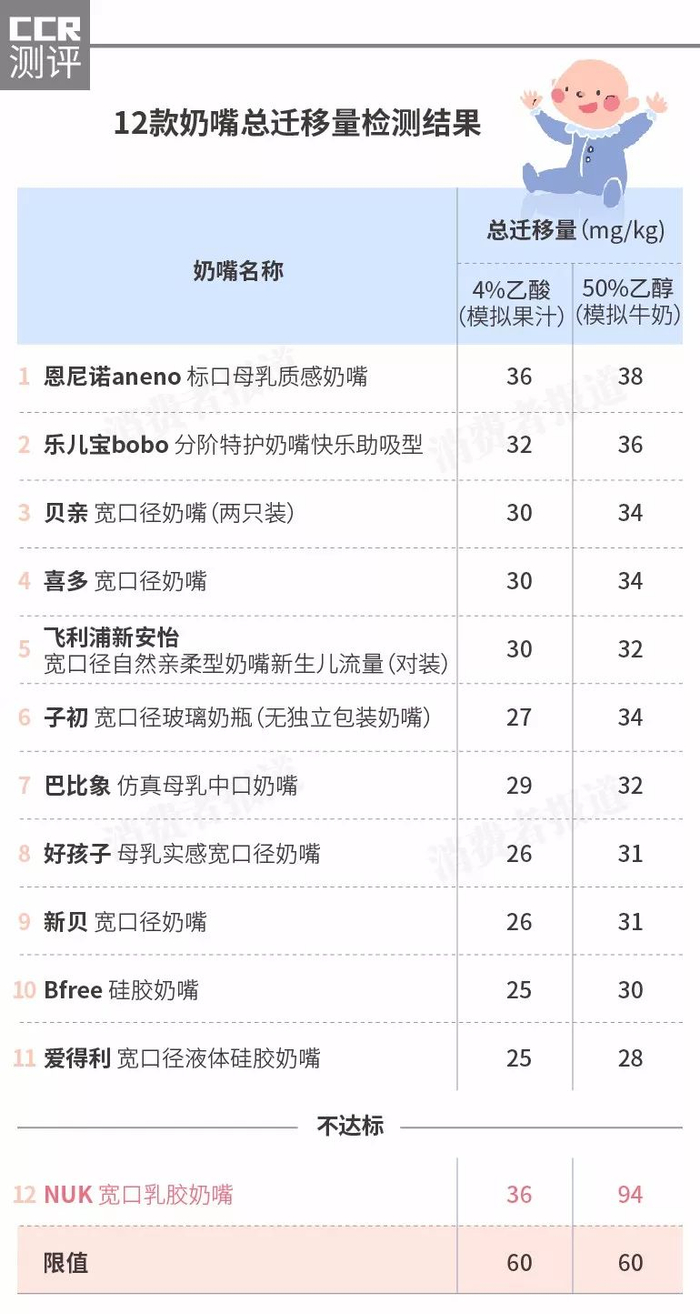 12款奶嘴安全测试:整体安全可用,但NUK奶嘴总迁移量超标1.5倍!