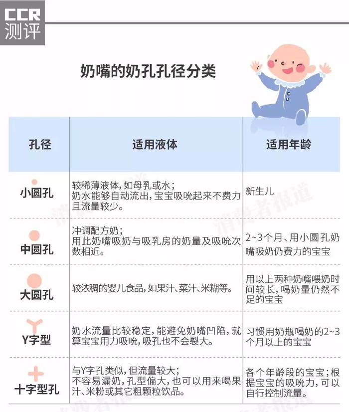 如果孔太小,宝宝就需要用力地吮吸,由此吞入很多空气,容易发生腹胀、吐奶的情形;如果孔太大,奶流出的太急,又可能呛到。