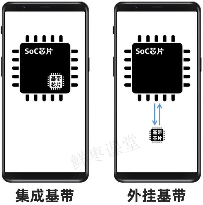 也就是说,基带并没有被集成到SoC芯片里面,而是独立在SoC之外。
