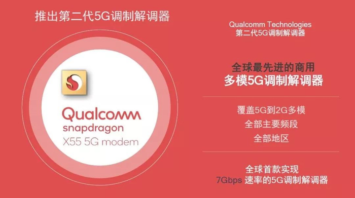 紧接着,高通在2月份,发布了X55基带,也同时支持SA/NSA,也是7nm,也支持多模。