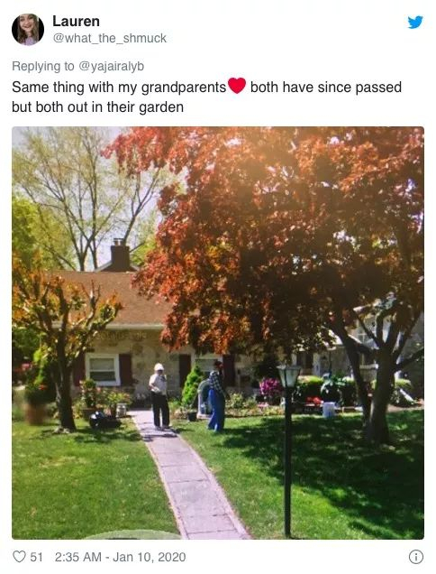 我的祖父母也一样,他们都离开我了,但我又在花园里看到了他们。