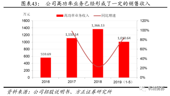 基于公司锐意进取的特质,以及在下游客户已经形成的品牌效应等方面考虑,我们判断公司高功率产品有望复制中低功率成长路径,实现快速发展: