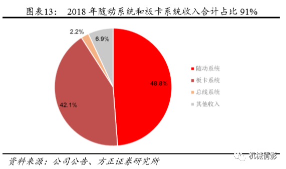 在收入构成中,随动系统和板卡系统收入占比超90%,是公司收入的主要来源。2018年经营数据显示公司随动系统占营收比例为48.79%,板卡系统业务占营收比例为42.11%,其他合计收入占比不足10%。考虑到公司于2017年推出面向高功率激光切割设备的总线系统,随着高功率产品不断突破,后续相关产品收入占比有望进一步提升。