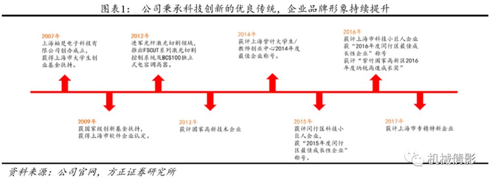 在公司十二年的发展历程中,始终秉承科技创新的优良传统,主攻激光加工技术及相关控制理论科学的研发,其自主研发的项目已先后获得国家技术创新基金项目、上海市创新资金项目、上海市软件和集成电路产业发展专项资金项目、闵行区科研项目与闵行区产学研项目等一系列技术项目的肯定。公司先后荣获“上海市小巨人企业”,上海市“专精特新”企业,“闵行区小巨人培育企业”,“闵行区研发机构”等多项企业荣誉,企业品牌形象持续提升。