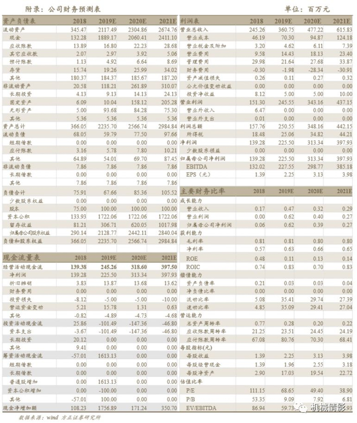 我们预计公司2019-2021年净利润分别为2.26、3.13、3.98亿元,对应EPS分别为2.25、3.13、3.98元,对应PE分别为68.65、49.40、38.90倍。首次覆盖,给予“推荐”投资评级。