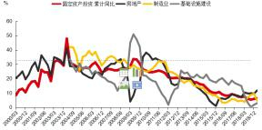 投资增长速度下降又是什么原因造成的?投资可以分成三大部分:房地产、制造业、基础设施,不同时期起的主要作用也不一样。这里我们可以看到基础设施投资下降比较厉害,最近稍微好一点。制造业投资也是持续下降。2018年和2019年中国投资增速还是靠的房地产投资支撑。我们希望房地产投资所占比重小一点,因为房地产投资在GDP在固定资产投资中占比太高,从资源配置角度来说不太合理。所以我们希望它增速慢一点,其他增速快一点,但是现在恰恰我们是靠它维持了一定的经济增长速度。原来我非常主张抑制房地产投资增速的,但现在我不主张了,因为在短期内还要因为就靠着它了。你再打压它中国经济增长速度就更下去了,所以有时候为了更大的原则,你自己得牺牲一点原则。