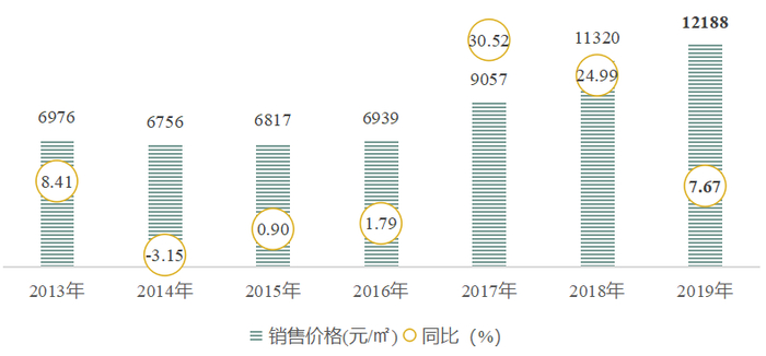 图:2013-2019年重庆主城区商品住宅销售价格走势