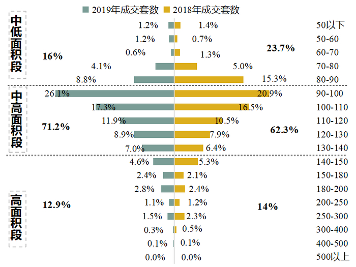 图: 2018-2019年重庆主城区住宅成交面积结构