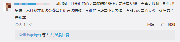 一部分网友表示赞同,认为只要文章够精彩就愿意买单,知识付费很合理。