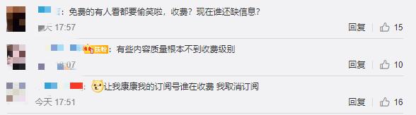 还有一部分网友则不同意收费,他们称,现在是信息爆炸的时代,不缺信息,现在免费的都不看,如果收费,则更不会再看订阅号文章。