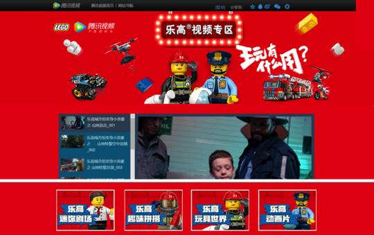 2018年六一儿童节期间,乐高视频专区在腾讯视频正式上线,目前总播放量已达到21亿。乐高集团为儿童专属打造的包括《乐高迷你剧场》、《乐高趣味拼搭》、《乐高玩具世界》等三大专辑在内超过800条精彩短视频,均可在腾讯视频PC端、移动端、TV端及“小企鹅乐园”APP等渠道收看。