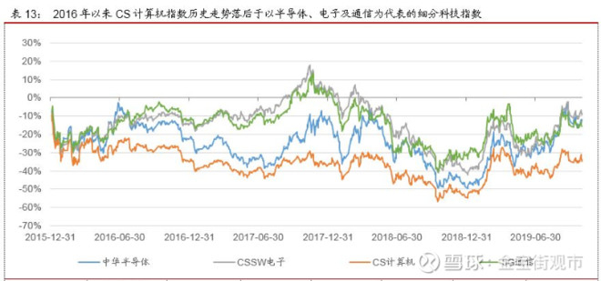 计算机方向只有一只指数,但与其他细分指数比,历史表现垫底。从2016年以来,CS计算机指数走势显著落后于半导体、电子和通信指数。短期可以不看。