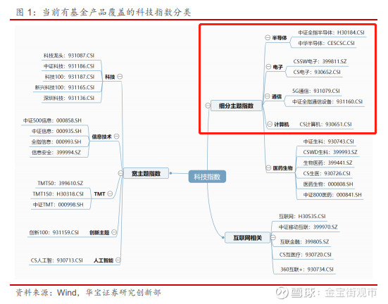 目前有产品对应的科技相关指数,华宝证券科技指数基金报告中,有一张图比较清晰,我贴过来: