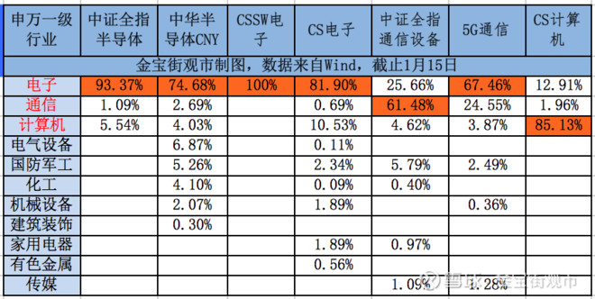 根据申万一级行业分类,划分上电子、通信、计算机是三个并列的行业细分方向,而半导体是电子下面一大细分,这么看,半导体更窄、也更纯,刚好对应一个产业。
