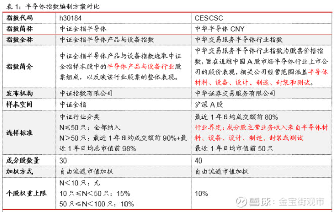 目前我是比较看好半导体方向的,正是风口,细分产业清晰。两只半导体指数,中华半导体CNY指数(对应半导体50ETF)成分股数量更多(仍不足50只)。