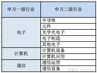 剩下的4个方向半导体、电子、通信(包含5G)、计算机。到底是啥关系?我再借助申万一二级行业分类来理解: