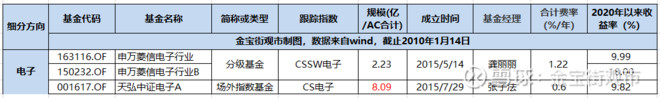 (电子行业暂时没有ETF,场内只有个分级基金,暂且把电子B混入)