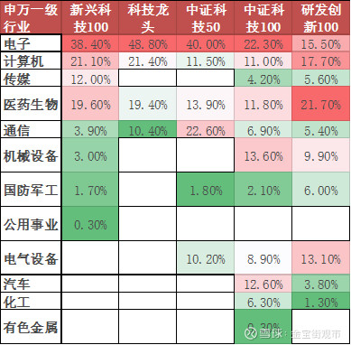 其实各家基金公司对于啥是科技,就有不同理解。比如上一篇说到的,5只科技聪明指数投的行业范围各不相同,有的包括传媒、有的有汽车、有的有军工等。