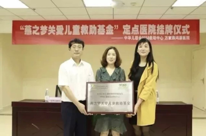 ▲中华儿慈会9958救助中心与重庆万家燕鸿源医院有限公司合作的“燕之梦关爱儿童救助基金”挂牌成立。