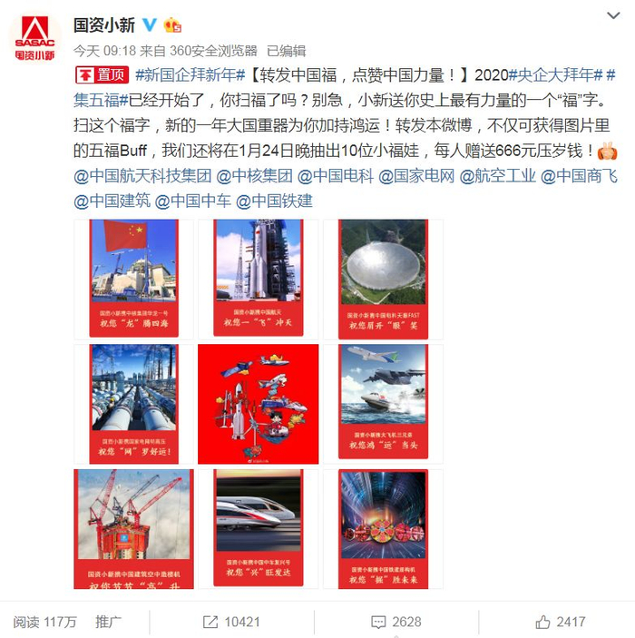 @国资小新 微博抽奖送红包啦! 划重点:1月24晚上,抽10位小福娃每人666元压岁钱!祝你新的一年666,顺顺顺!