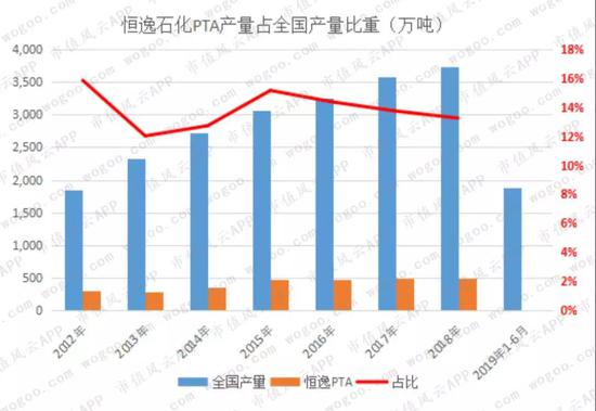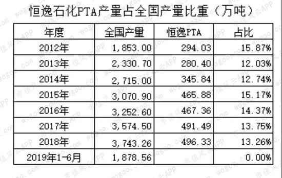 从实际产量看,恒逸石化的PTA产量(外销)占同期全国产量的13%以上。