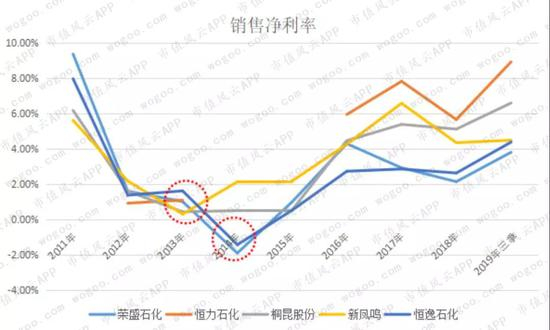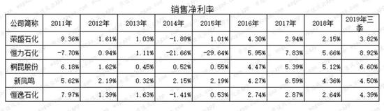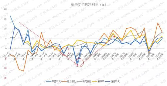 不管是年度还是单季度销售净利率,恒逸石化基本都是最低的。