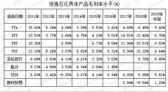 从2019年半年报数据看,恒逸石化聚酯产量占全国产量比重自2017年以来逐年上升,说明其市场占有率逐步提升。