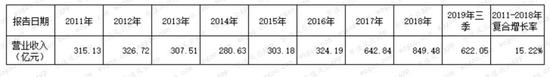从2011年的315亿元增长到2018年的近850亿元,翻了1.7倍,年复合增长率超过15%,鉴于行业龙头企业同期荣盛石化的21%和桐昆股份的11%之间。