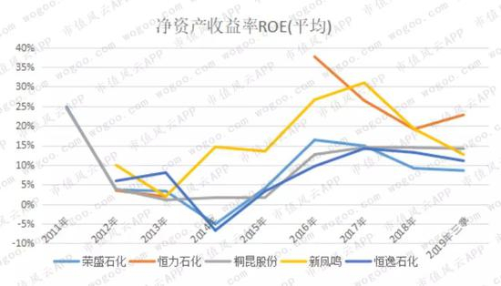 与净利率类似,恒逸石化的净资产收益率与荣盛石化、桐昆股份非常接近,均处于较低水平。