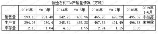 恒逸石化的聚酯产量与效率处于基本平衡情况,库存量非常小;PTA和聚酯的库存周转率都很高。在经历2016年底部后,最近3年产销量快速回升,从2019年1-6月的产销量情况看,全年将再次创新高。