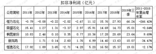 留个问题,恒逸石化的净利润与扣非净利润相差很大,2017年相差2亿元,2018年相差7亿元,2019年前三季度相差8亿元。