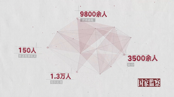 2019年,全国共谈话函询纪检监察干部9800余人,组织处理1.3万人,处分3500余人,涉嫌犯罪移送检察机关150人。这组数据也彰显着纪检监察机关防治灯下黑,坚决清除害群之马的决心和意志。