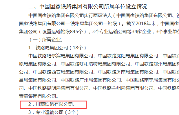 在国铁集团所属单位名单上,川藏铁路有限公司被单独列出。