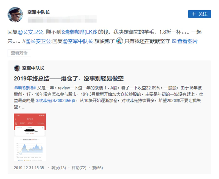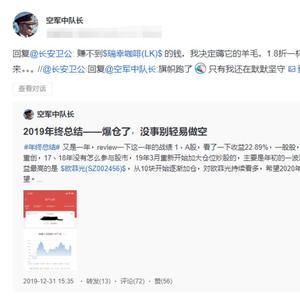 2019年12月31日,知名股市大V@空军中队长在年终总结中写道: