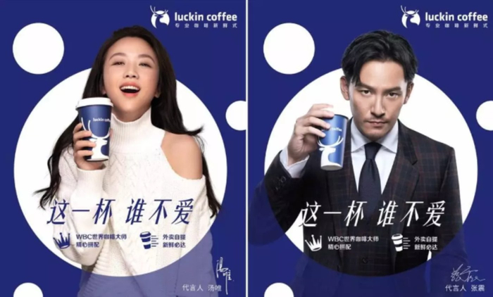 犹记得当初一夜之间,漫天遍地到处开满了瑞幸咖啡的广告:写字楼电梯广告、宣传单、地推体验点、开屏广告、人形立牌……到处洋溢的是汤唯和张震笑吟吟的脸。