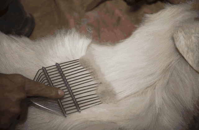 每年春季山羊脱毛之际,用特制的铁梳抓取绒毛,去除杂质、杂毛,留下最纤细软糯的部分。
