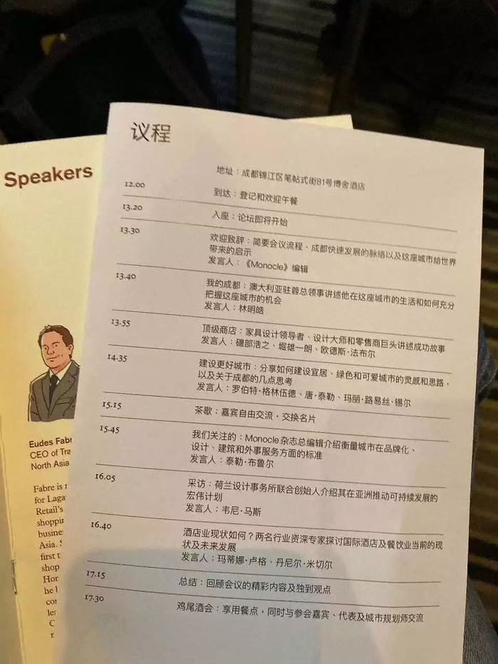成都论坛的现场别册《the Chengdu Top Twentyfive》及大会议程。