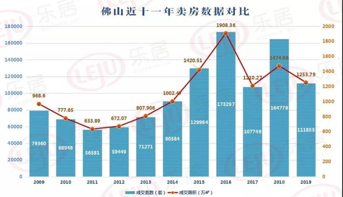 2019年佛山一二手房卖逾16万套,其中新房成交111855套,比2018年(164778套)锐减超5万套,成交面积达1253.79万㎡,同比2018年(1474万㎡)跌幅达14.94%。从历年成交来看,该成绩为近五年第二低,仅略高于2017年(10.7万套)。
