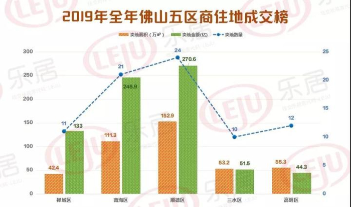 从佛山各区的成交来看,顺德以24宗地、152.9万㎡成交面积、270.6亿的成交金额连续三年问鼎佛山拍地大户。南海区紧随其后,共成交地块21宗,里水、狮山和桂城为成交主力。值得一提的是,大沥、狮山、丹灶、张槎、乐从和西南6个板块地价被刷新。