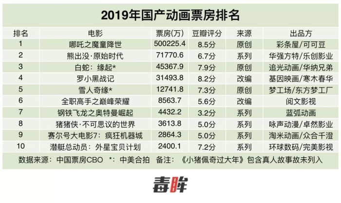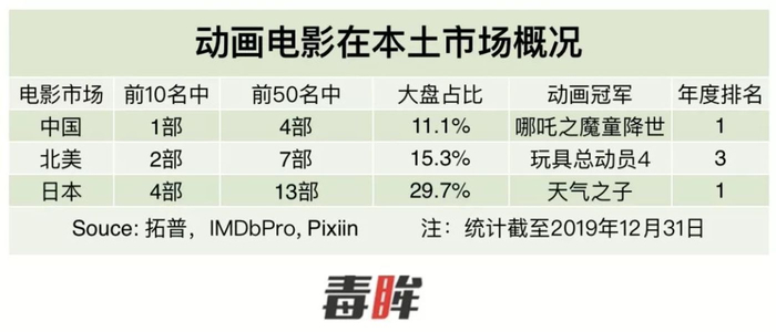 2019年行业的集中爆发,让市场看到了全年龄向动画电影的市场潜力,也令非少儿向作品的《姜子牙》如今能够杀入春节档,是一次重要的跨越。但据毒眸了解,在很多下沉市场观众对于动画的刻板印象还未被完全扭转,仍然需要更多优质的成人向电影去打开市场、激活受众。