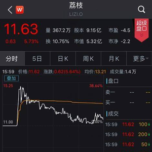上市首日,荔枝盘中一度上涨近40%。截至收盘报11.63美元/股,上涨5.73%,总市值5.32亿美元。
