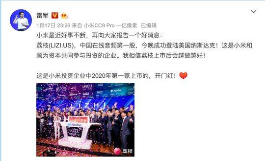 荔枝的成功首秀,在雷军看来,是小米投资企业今年的“开门红”。